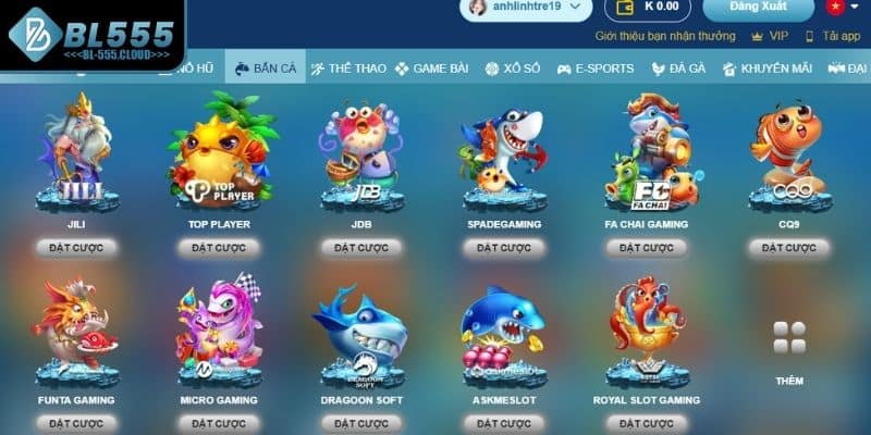 Không chỉ gây ấn tượng bởi giao diện bắt mắt và gameplay dễ tiếp cận, Bắn Cá BL555 còn được biết đến với hệ thống nhà phát hành đa dạng, phục vụ mọi phong cách người chơi. Mỗi sảnh sở hữu thế mạnh riêng về nội dung, phần thưởng và trải nghiệm mở ra cơ hội săn cá đổi thưởng cực kỳ hấp dẫn.